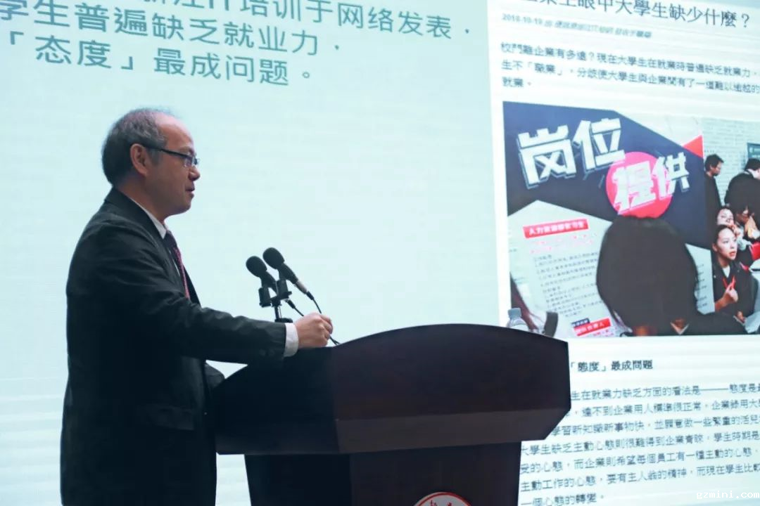 台湾龙华科技大学校长葛自祥发表题为“大学应更重视学生职场伦理与正确态度之养成教育”的演讲。