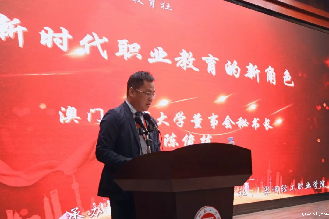 澳门城市大学董事会秘书长陈俊拔作题为“新时代职业教育的新角色”演讲,