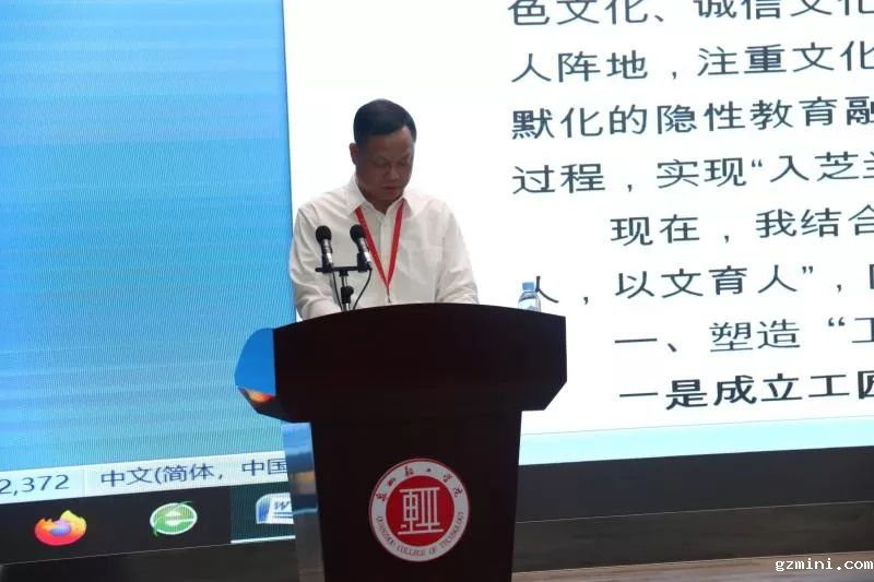 他指出:文化育人是职业教育的核心问题之一,随着国家经济的转型升级,对技术性人才的需求量也越来越高。作为职教人,未来我们要紧贴社会发展,进一步提高职业教育的地位,培养具有工匠精神的人,才能符合新时代的新需求。