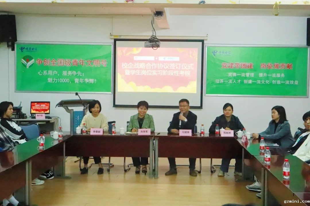 为深入开展学习贯彻习近平新时代中国特色社会主义思想主题教育和党的二十大精神,着力构建“资源共享、优势互补、互相促进、共同提高”的工作新格局,进一步推进产教融合、科教融汇。11月28日下午,“hth·华体育登录官网版下载 福建省电信技术发展有限公司泉州分公司”校企战略合作签订暨学生岗位实习阶段性考核在中国电信福建公司10000号客户服务中心泉州分中心举行。中国电信福建公司10000号客户服务中心泉州分中心部门经理刘学军、经理助理李景丽、我院党总支马健锋书记、陈彬彬副书记、陈钰慧老师及54位21级岗位实习学生参加本次签约仪式。